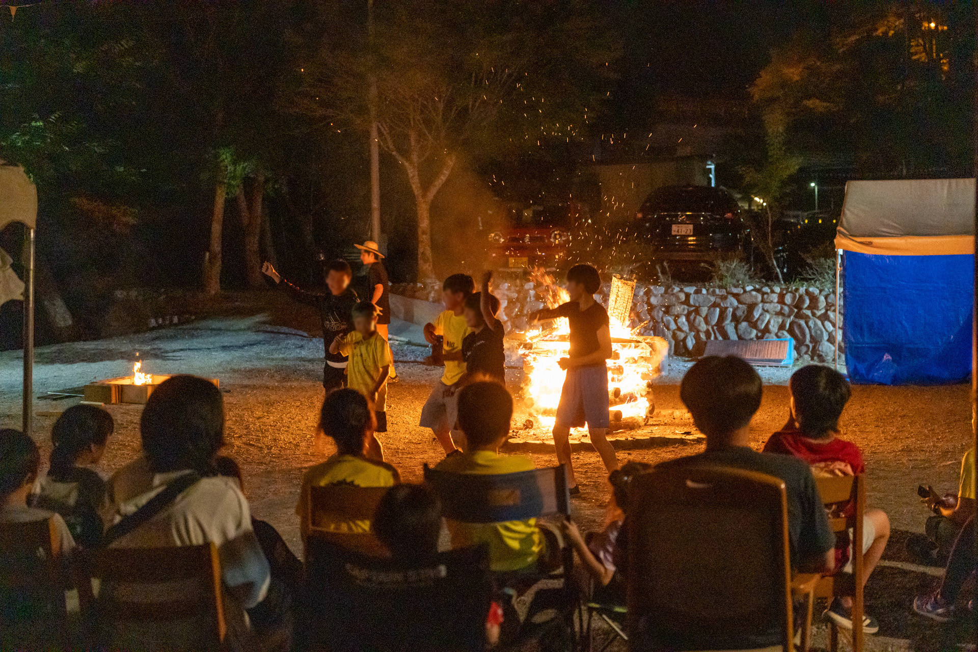夏は親も一緒にキャンプに行き、バーベキュー・川遊び・キャンプファイヤーなど盛り沢山のイベントを楽しみます。調理などの活動を、学年縦割りの班で協力して頑張るので、帰ってくると我が子の一つ成長した姿を見れる感動が!?